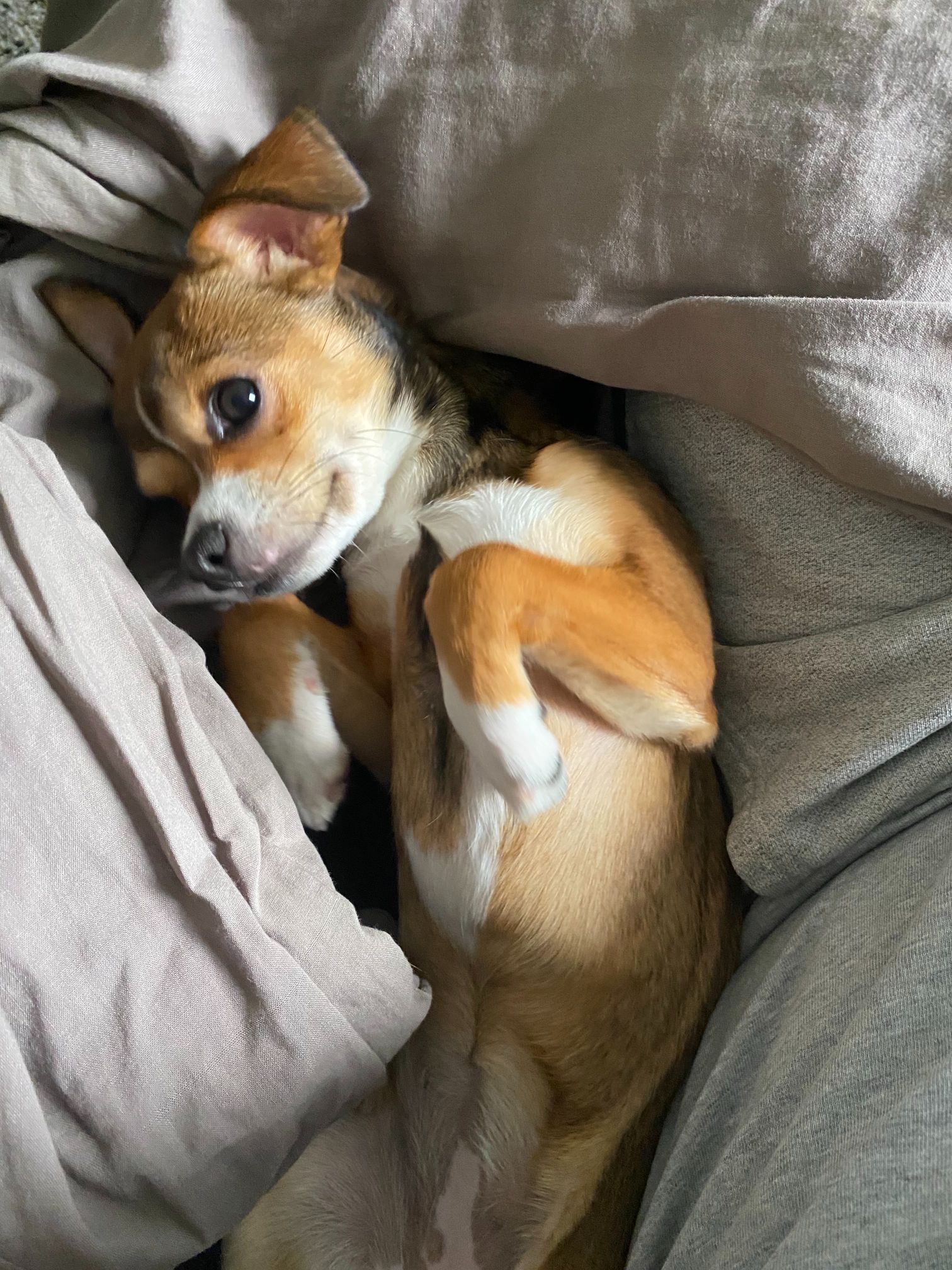 Enfin, nous avons ce qui ressemble à la position du « cafard mort », le chien dormant sur le dos, les pattes étendues en l’air.